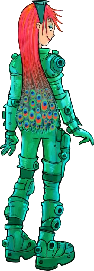 Is the avatar name of an advanced A.I. From the planet Epheris. Gaia has fabulous feathery green hair, not dissimilar to a peacock’s tail. She’s especially passionate about ecological issues, and knows just about everything there is to know about the virtual world of Inverse. A long suffering friend of Leo Cydermott, she’s had to endure more than her fair share of his wayward practical jokes